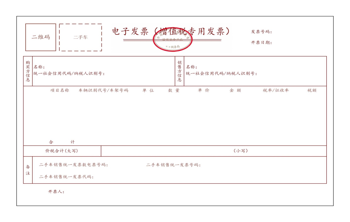 統(tǒng)一社會信用代碼/納稅人識別號 (銷方) | | 統(tǒng)一社會信用代碼/納稅人識別號 (購方) | |