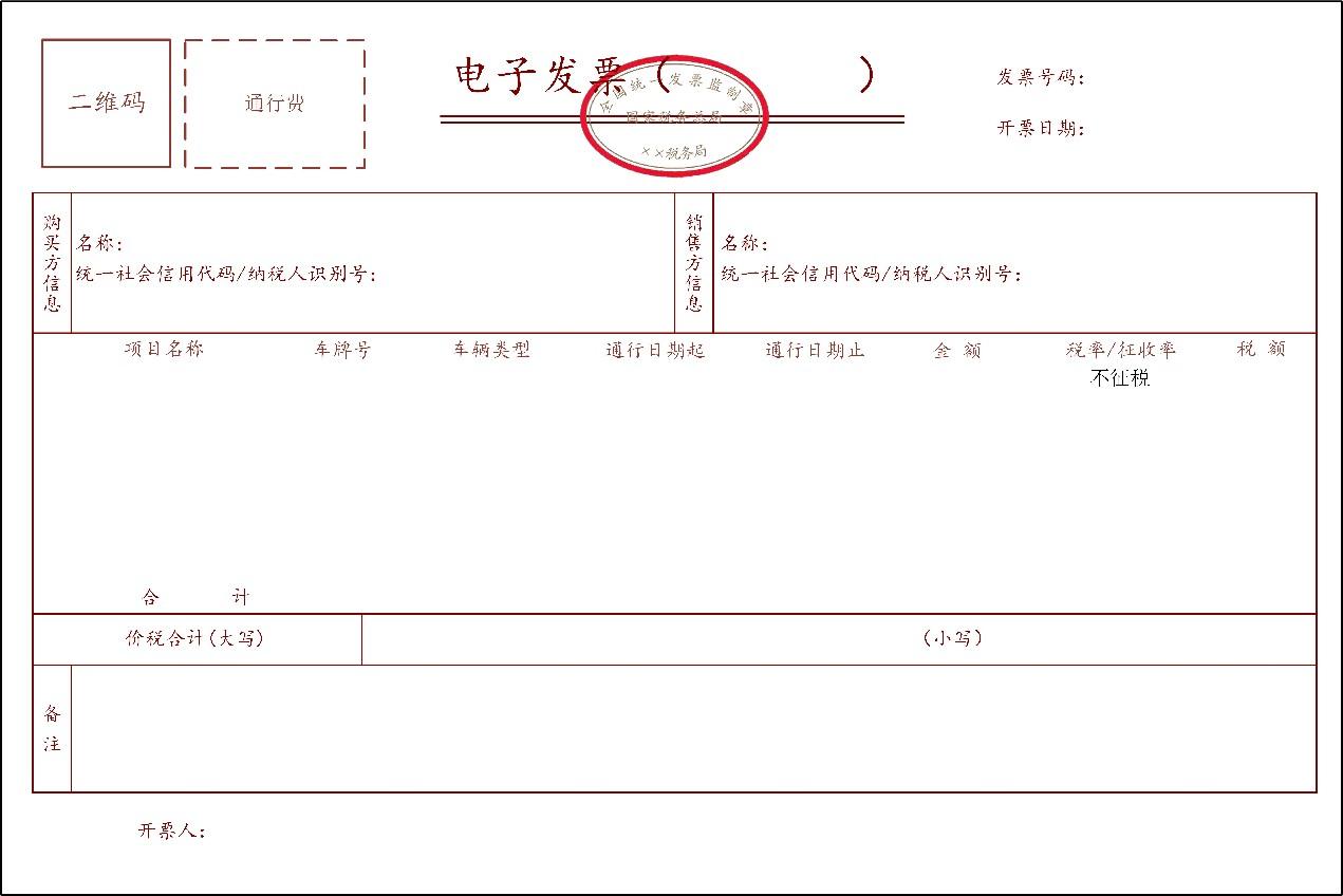 (一)通行費(fèi)(不征稅)發(fā)票票樣