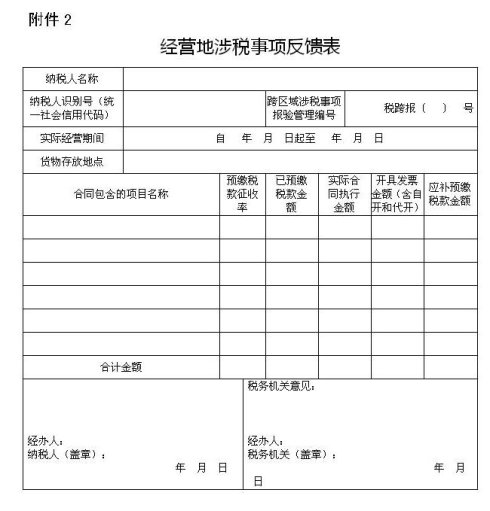 2.經(jīng)營地涉稅事項反饋表